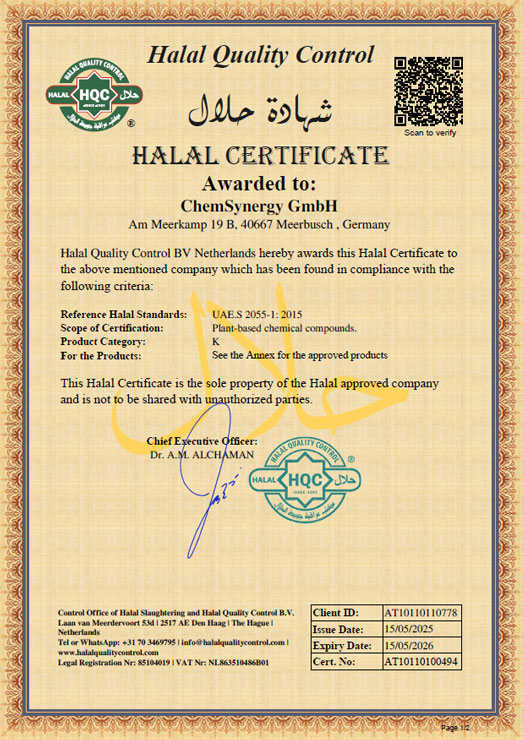 Fatty Acohols Halal Certificate